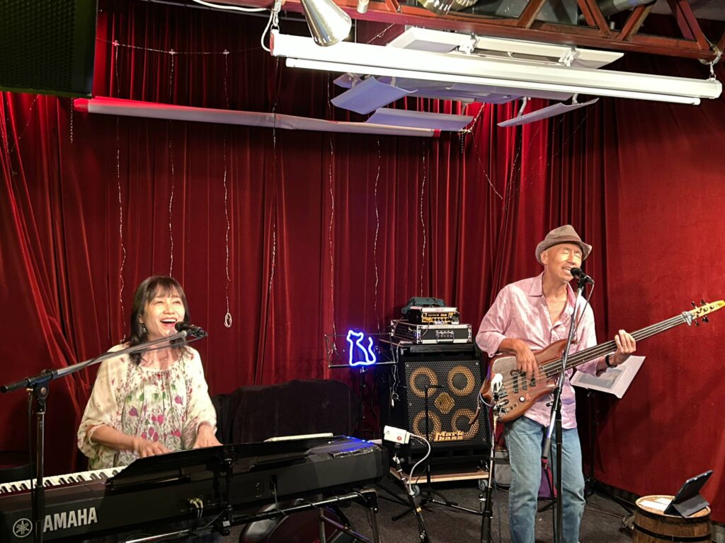実際はこの日、ハーモニィの変化には演奏中から気づいてゐたのだが、しーなさんが、長年染み付いてゐた「歌い方(発声法)」を変えてみた、と云ふ事で、やはりさうか!と。なんて〜のか、今まではやや異質な声の絡みが、より有機的になった、といふかんぢがした。お客様は気付いたでしょーか?。