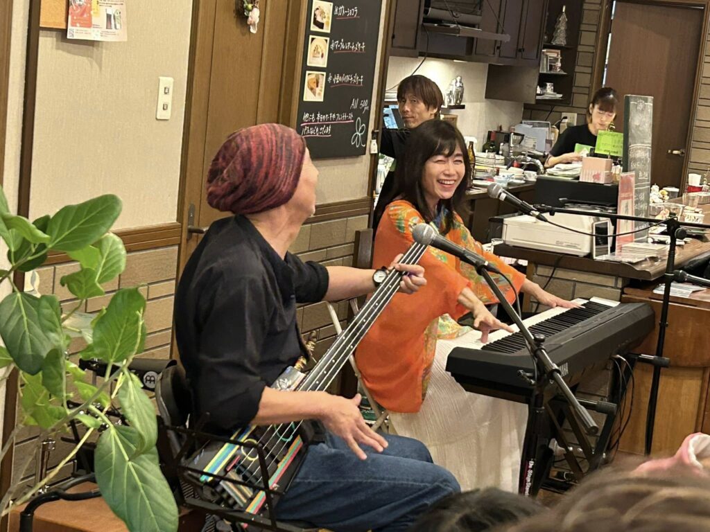 約6年ぶりの推参となる、京都は伏見のカフェ「オレンジハウス」にて、しーシュ、オイワさんこと岩井雅実、西院ジムとの三つ巴ランチ・ショウ。6年前、といふとコロナの直前ぐらいだな。オーナーの西山さんご夫婦に出迎えられ、和やかに。